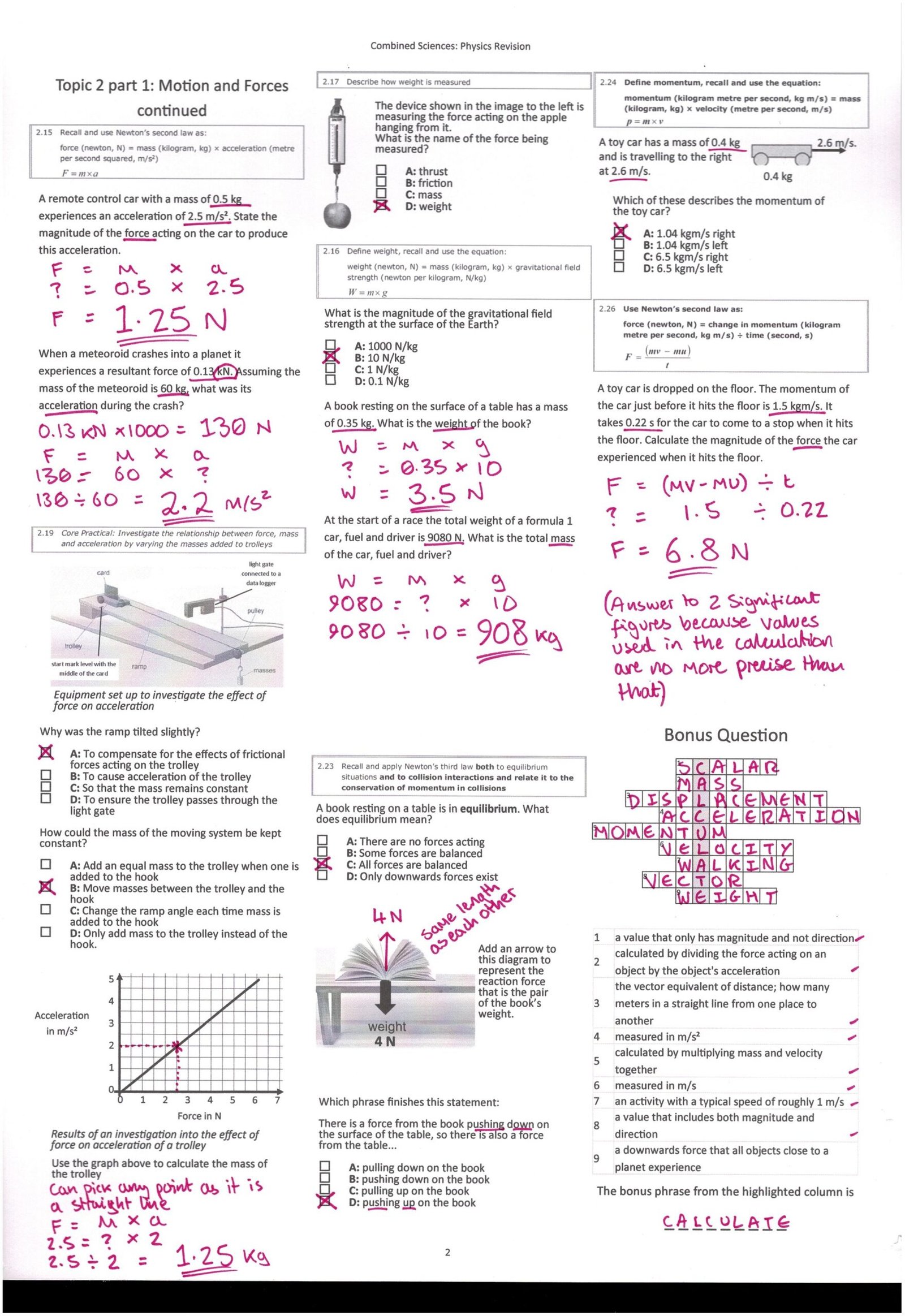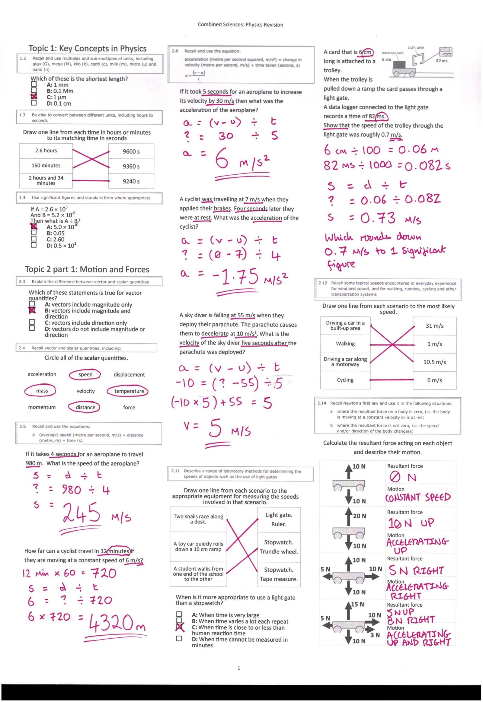 Topic 2 – Motion and Forces