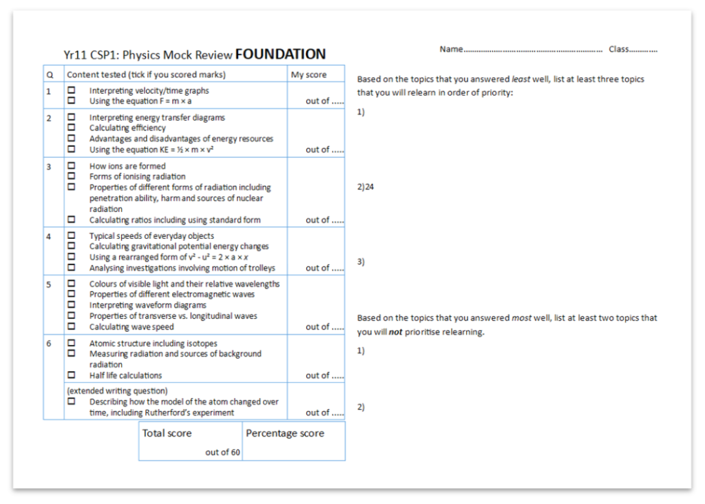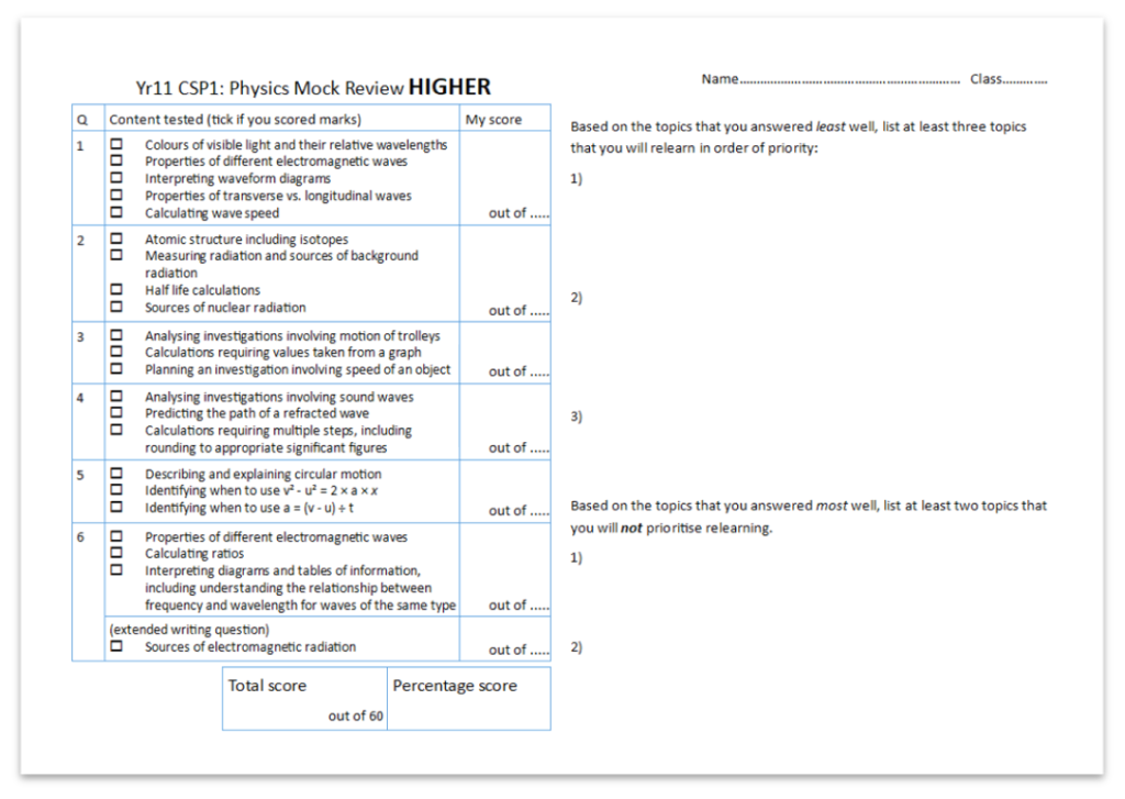 Use these sheets to review your mock exams and identify which of these resources to use for targeted revision